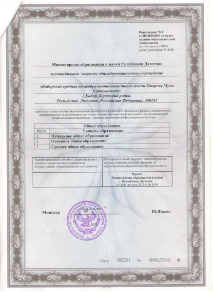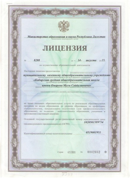 Полное наименование образовательной организации* Муниципальное казенное общеобразовательное учреждение "Кабирская средняя общеобразовательная школа"